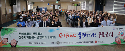 ÇÑÆí ·Ôµ¥¹éÈÁ¡ ÀüÁÖÁ¡Àº Áö³ 5¿ù Áö¿ª ¼Ò»ó°øÀεéÀÇ »óǰ È«º¸¿Í »ó»ýÀ» À§ÇÑ ÀÚ¸®·Î '¿Á»ó°ø¿ø Çø®¸¶ÄÏ'À» ÁøÇàÇÏ¿© À̸¦ ÅëÇØ ¸ð±ÝµÈ ±âºÎ±Ý°ú ·Ôµ¥¹éÈÁ¡ÀÇ ±â±ÝÀ» ´õÇØ ÀüºÏ Àû½ÊÀÚ»çÀ» ÅëÇØ ¾î·Á¿î ÀÌ¿ôÀ» À§ÇÑ ±âºÎ±ÝÀ» Àü´ÞÇÑ ¹Ù ÀÖ°í, 6¿ù¿¡´Â °¡Á·À» ºÎ¾çÇϰųª °£º´ÇÏ´Â °¡Á·µ¹º½Ã»³âµéÀÇ Á¤¼Áö¿øÀ» µ½±â À§ÇØ ÀüÁֽÿ¡ ¼º±Ý 500¸¸¿øÀ» ÈÄ¿øÇÏ¿´´Ù. /±è¿Á±â ±âÀÚ