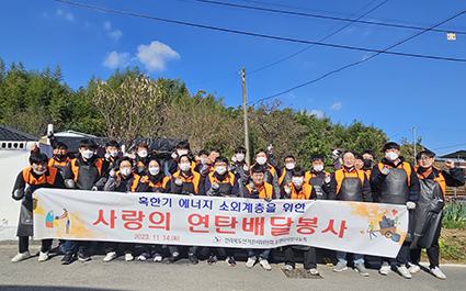 À̹ø ºÀ»çȰµ¿Àº ¿¡³ÊÁö Ãë¾à°èÃþÀÇ ¿ùµ¿Áغñ¿¡ µµ¿òÀ» ÁÖ±âÀ§ÇØ È¸¿øµéÀÇ ¼º±ÝÀ¸·Î ±¸ÀÔÇÑ ¿¬ÅºÀ» ȸ¿ø 20¿©¸íÀÇ Âü¿©·Î Á÷Á¢ Àü´ÞÇÏ¿´´Ù.