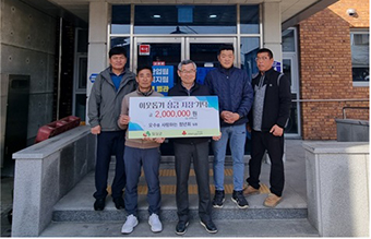 ¿À¼ö¸¦ »ç¶ûÇϴ û³âȸ(ȸÀå ±èÇØÃµ) ȸ¿øµéÀÌ ¿¬¸»À» ¸Â¾Æ ¿À¼ö¸é»ç¹«¼Ò¸¦ ã¾Æ Áö¿ª Ãë¾à°èÃþÀ» À§ÇØ 200¸¸¿ø »ó´çÀÇ ÁÖÀ¯±Ç°ú »óǰ±ÇÀ» Àü´ÞÇÏ´Â ±âʽÄÀ» °¡Á³´Ù.