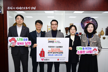 ³²¿ø½Ã´Â Èñ¸Á2024 ³ª´®Ä·ÆäÀÎÀ» ¸Â¾Æ NH³óÇù ³²¿ø½ÃÁöºÎ¿¡¼ Çö±Ý 1õ¸¸¿ø°ú Ãà»ê¹°²Ù·¯¹Ì 180¹Ú½º(540¸¸¿ø »ó´ç)¸¦ Åë Å©°Ô ±âºÎÇß´Ù°í 20ÀÏ ¹àÇû´Ù.