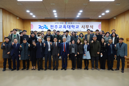 ÀüÁÖ±³À°´ëÇб³(ÃÑÀå ¹Úº´Ãá)´Â 2ÀÏ ¿ÀÀü 11½Ã ±³»ç±³À°¼¾ÅÍ ¸¶À½¿¬±¸È¦¿¡¼ ÁÖ¿ä º¸Á÷ÀÚ, ´ëÇÐ, ÀüÁֺμ³ÃÊ, ±º»êºÎ¼³ÃÊ ±³Á÷¿ø µî 70¿© ¸íÀÌ Âü¼®ÇÑ °¡¿îµ¥ 2024³â ½Ã¹«½ÄÀ» ¿°í ¡®ÈûÂù Ãâ¹ß, »õ·Î¿î µµ¾à¡¯À» ´ÙÁüÇß´Ù.