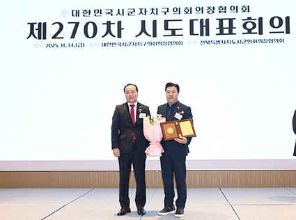 ¿À±¤¼® ¹«ÁÖ±ºÀÇȸ ÀÇÀåÀÌ ´ëÇѹα¹Áö¹æÀÇÁ¤ºÀ»ç»óÀ» ¼ö»óÇß´Ù.
