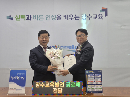 Àå¼ö±³À°Áö¿øÃ»(±³À°Àå Ãß¿µ°ï)ÀÌ Áö³ 12¿ù 31ÀÏ, Àå¼ö±³À°Áö¿øÃ»¿¡¼ ³ª·¡ÄÚ¸®¾Æ ±è»ý±â ´ëÇ¥¸¦ Àå¼ö±³À°Áö¿øÃ» ¸í¿¹±³À°ÀåÀ¸·Î À§ÃËÇϰí, Àå¼ö±³À° ¹ßÀü¿¡ ±â¿©ÇÑ ³ë°í¸¦ ±â¸®¸ç °¨»çÆÐ¸¦ ¼ö¿©Çß´Ù.