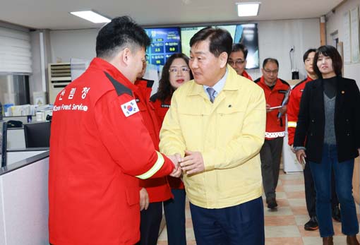 11ÀÏ ±è°ü¿µ ÀüºÏƯº°ÀÚÄ¡µµÁö»ç°¡ ÀÍ»ê»ê¸²Ç×°ø°ü¸®¼Ò¸¦ ã¾Æ º½Ã¶ »êºÒ ´ëÀÀ¿¡ Èû¾²´Â Á÷¿øµéÀ» °Ý·ÁÇϰí, Ç×°ø ÁøÈü°è¸¦ Á¡°ËÇϰí ÀÖ´Ù.