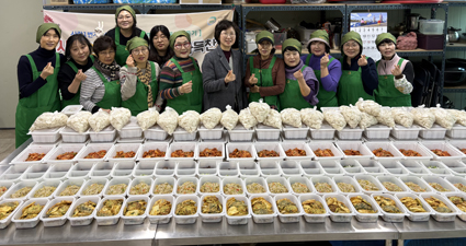 À̳¯ ºÎ³àȸ¿ø 20¿© ¸íÀº À̸¥ ¾ÆÄ§ºÎÅÍ µ¿ »ç¹«½Ç ºÀ»ç °ø°£¿¡ ¸ð¿© ¶±±¹°ú ºÎħ°³, 3Á¾ ¹Ø¹ÝÂùÀ» Á¤¼º²¯ ¸¶·ÃÇß´Ù. À½½Ä ÇϳªÇϳª¿¡´Â ¡°µû¶æÇÑ ¼³À» º¸³»½Ã¶ó¡±´Â Á¤¼º½º·¯¿î ¸¶À½À» ´ã¾Æ ºÀ»çȰµ¿À» Àü°³Çß´Ù.