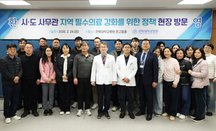 ÀüºÏ´ëÇб³º´¿ø(º´¿øÀå ¾çÁ¾Ã¶)Àº Àü±¹ ½Ã¡¤µµ »ç¹«°ü ½ÂÁøÀÚµéÀÌ Áö¿ª ÇʼöÀÇ·á¿Í °ø°øº¸°ÇÀÇ·á Á¤Ã¥ÀÇ ÇöÀå Àû¿ë »ç·Ê¸¦ °øÀ¯Çϱâ À§ÇØ º´¿øÀ» ¹æ¹®, Á¤Ã¥ ÇöÀå °£´ãȸ¸¦ ÁøÇàÇß´Ù°í 25ÀÏ ¹àÇû´Ù.