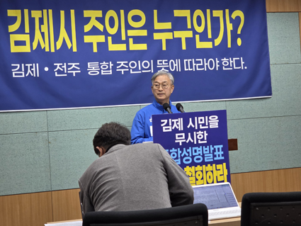 ³ªÀ뱂 ¿¹ºñÈ帴 11ÀÏ ¿ÀÀü ÀüºÏƯº°ÀÚÄ¡µµÀÇȸ ºê¸®Çη뿡¼ ±âÀÚȸ°ßÀ» ¿°í, Áö³ 9ÀÏ ±èÁ¦½ÃÀÇȸ°¡ ¹ßÇ¥ÇÑ ±èÁ¦-ÀüÁÖ ÅëÇÕ ÃßÁø Ã˱¸ ¼º¸í°ú °ü·ÃÇØ ¡°±èÁ¦ ½Ã¹ÎÀÇ ÇÑ »ç¶÷À¸·Î¼ Å« Ãæ°ÝÀ» ¹Þ¾ÒÀ¸¸ç, Ã¥ÀÓ ÀÖ´Â Á¤Ä¡ÀÎÀ¸·Î¼ ±íÀº À¯°¨À» Ç¥ÇÑ´Ù¡±°í ¹àÇû´Ù.