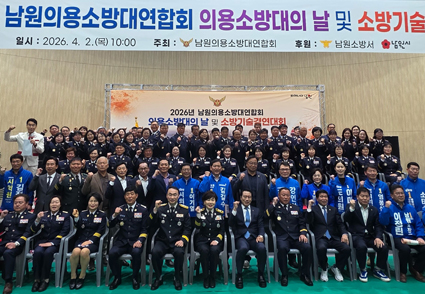 ³²¿ø½Ã ÀÇ¿ë¼Ò¹æ´ë¿¬ÇÕȸ(ȸÀå ¾ç¼ºº¹, Çã°æÀÌ)´Â 2ÀÏ, ³²¿ø¹Ý´ÙºñüÀ°°ü¿¡¼­ ÀÇ¿ë¼Ò¹æ´ë¿ø°ú °¡Á· 400¿© ¸íÀÌ ÇÔ²²ÇÑ °¡¿îµ¥ ´ë¿øµéÀÇ È­ÇÕÀ» µµ¸ðÇÏ°í ½ÇÀü ´ëÀÀ ¿ª·®À» °­È­Çϱâ À§ÇÑ ¡®2026³â ÀÇ¿ë¼Ò¹æ´ëÀÇ ³¯ ±â³ä½Ä ¹× ¼Ò¹æ±â¼ú°æ¿¬´ëȸ¡¯¸¦ °³ÃÖÇß´Ù°í ¹àÇû´Ù.
