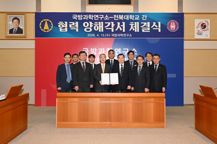 ÀüºÏ´ëÇб³´Â 4¿ù 15ÀÏ ¿ÀÈÄ 2½Ã 30ºÐ ±¹¹æ°úÇבּ¸¼Ò¿¡¼ ¾ç¿ÀºÀ ÃÑÀå°ú ÀÌ°Ç¿Ï ¼ÒÀåÀ» ºñ·ÔÇÑ ¾ç ±â°ü ÇÙ½É °ü°èÀÚµéÀÌ Âü¼®ÇÑ °¡¿îµ¥, ÷´Ü ±¹¹æ°úÇбâ¼ú ¿¬±¸Çù·Â°ú ¿ì¼ö Àü¹®Àη ¾ç¼ºÀ» À§ÇÑ ¾÷¹«Çù¾à(MOU)À» ü°áÇÏ°í º»°ÝÀûÀÎ Çù·Â¿¡ ³ª¼¹´Ù°í ¹àÇû´Ù.