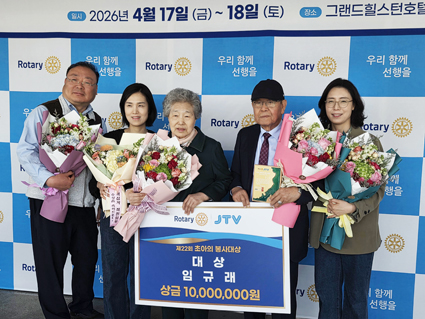 Ä£ÀýºÀ»çȸ ÀÓ±Ô·¡ ȸÀåÀÌ Áö³ 18ÀÏ ¿ÀÀü 11½Ã ¿¸° JTV¿Í ±¹Á¦·ÎŸ¸® 3670Áö±¸¿Í ÇÔ²²ÇÑ ¡®ÃʾÆÀÇ ºÀ»ç ´ë»ó¡¯ ½Ã»ó½Ä¿¡¼ Ưº°´ë»óÀ» ¼ö»óÇß´Ù.