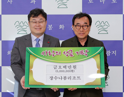 Àå¼ö ³ªº½¸®Á¶Æ®(´ëÇ¥ ¼µ¿ÇØ)´Â ÀÛ³â 12¿ù 31ÀÏ ¾î·Á¿î ÀÌ¿ôÀ» À§ÇÑ ¼º±Ý 500¸¸¿øÀ» Àå¼ö±º¿¡ ±âŹÇß´Ù.