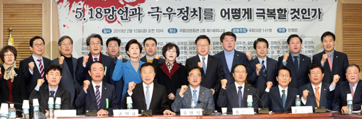15ÀÏ ¿ÀÀü ¼¿ï ¿µµîÆ÷±¸ ¿©Àǵµ ±¹È¸ ÀÇ¿øÈ¸°ü¿¡¼ ¿¸° "5.18¸Á¾ð°ú ±Ø¿ìÁ¤Ä¡, ¾î¶»°Ô ±Øº¹ÇÒ °ÍÀΰ¡" ±ä±ÞÅä·Ðȸ¿¡¼ ¼ÕÇÐ±Ô ¹Ù¸¥¹Ì·¡´ç ´ëÇ¥, È«¿µÇ¥ ´õºÒ¾î¹ÎÁÖ´ç ¿ø³»´ëÇ¥, ¿ì¿ø½Ä ÀÇ¿ø µî Âü¼®ÀÚµéÀÌ ±¸È£¸¦ ¿ÜÄ¡¸ç ±â³äÃÔ¿µÀ» Çϰí ÀÖ´Ù.
