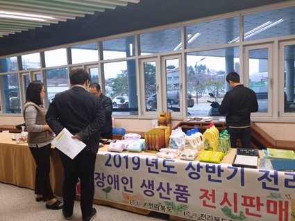À̹ø Çà»ç¿¡´Â Àå¼ö±º Àå¾ÖÀκ¸È£ÀÛ¾÷ÀåÀ» ºñ·ÔÇÑ ÀüºÏÁö¿ª Àå¾ÖÀÎÁ÷¾÷ÀçȰ½Ã¼³°ú º¸È£ÀÛ¾÷Àå µî 20°³ ½Ã¼³¿¡¼ »ý»êÇÑ »ç¹«¿ëǰ°ú ½Ä·áǰ, Àå°© ¹× ÇǺ¹¹° µî 20¿©°³ ǰ¸ñÀÇ Àå¾ÖÀÎ »ý»êǰÀÌ Àü½Ã¡¤ÆÇ¸ÅµÆ´Ù.