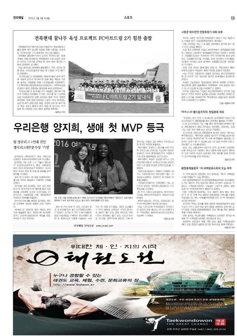 13¸é*½ºÆ÷Ã÷ -¿ì¸®ÀºÇà ¾çÁöÈñ, »ý¾Ö ù MVP ¼ö»ó |