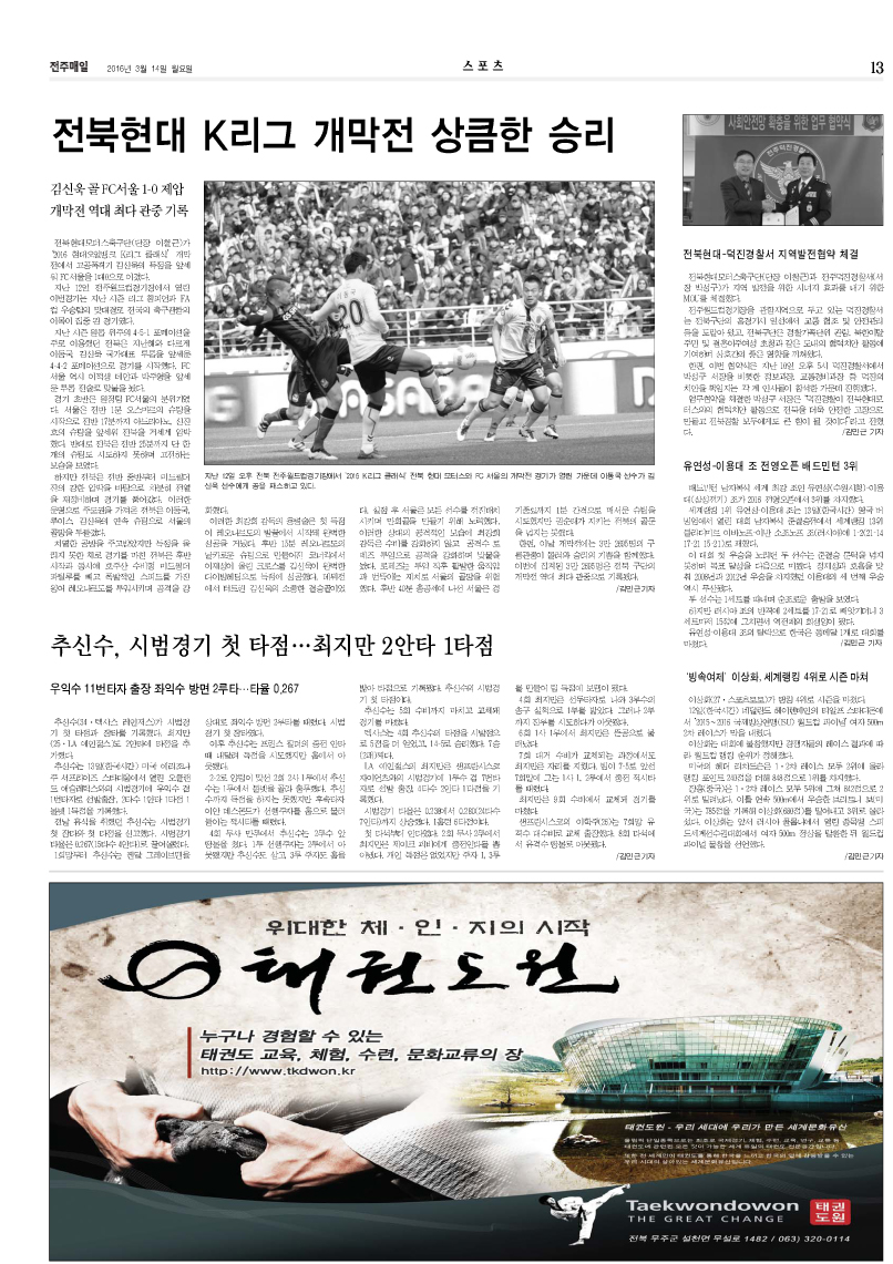 13¸é*½ºÆ÷Ã÷ -±è½Å¿í 1°ñ... ÀüºÏÇö´ë °³¸·Àü ½Â¸® |