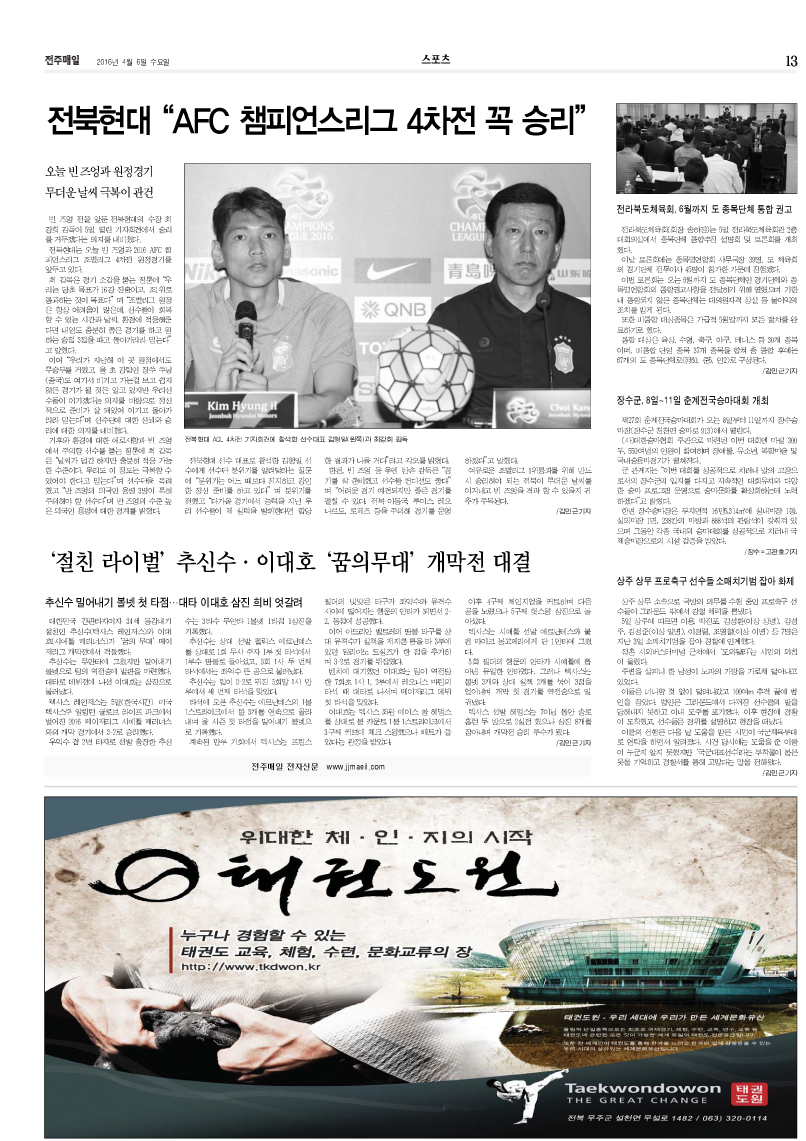 13¸é*½ºÆ÷Ã÷ -ÀüºÏÇö´ë "¾Æ½Ã¾ÆÃ¨½º¸®±× 4Â÷Àü ²À ½Â¸®" |