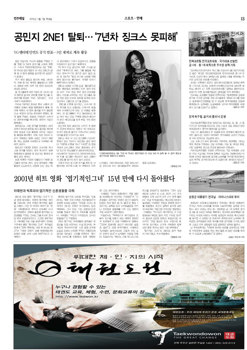 13¸é*½ºÆ÷Ã÷¿¬¿¹ -°ø¹ÎÁö 2NE1 Å»Åð... "7³âÂ÷ ¡ũ½º" ¸øÇÇÇØ |