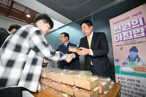 ¿ì¼®´ëÇб³´Â 2026Çг⵵ 1Çб⿡µµ ¾ÆÄ§ ½Ä»ç¸¦ °Å¸£±â ½¬¿î ÇлýµéÀ» À§ÇØ Àú·ÅÇÑ ºñ¿ëÀ¸·Î Á¶½ÄÀ» Á¦°øÇÏ´Â ¡®Ãµ ¿øÀÇ ¾ÆÄ§¹ä¡¯ »ç¾÷À» ¿î¿µÇÑ´Ù°í ¹àÇû´Ù. Áö³­ 24ÀÏ ÀüÁÖÄ·ÆÛ½º ±³¾ç°ü 1Ãþ¿¡¼­ ¿­¸° ½ÃÇà ±â³ä ¹è½Ä Çà»ç¿¡´Â ¹Ú³ëÁØ ÃÑÀå°ú À¯ÈñÅÂ, ÃÖÀ±È£ µîÀÌ Âü¼®Çß´Ù.