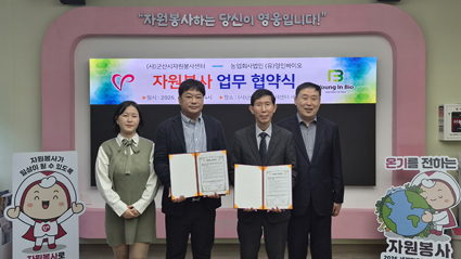 (»ç)±º»ê½ÃÀÚ¿øºÀ»ç¼¾ÅÍ(ÀÌ»çÀå ȲÁø)¿Í ³ó¾÷ȸ»ç¹ýÀÎ (À¯)¿µÀιÙÀÌ¿À(´ëÇ¥ ÃÖÀÎÁ¤)´Â 20ÀÏ ¿ÀÈÄ 2½Ã, ±º»ê½ÃÀÚ¿øºÀ»ç¼¾ÅÍ ¼¼¹Ì³ª½Ç¿¡¼ ÀÚ¿øºÀ»ç Ȱ¼ºÈ¸¦ À§ÇÑ ¾÷¹«Çù¾à(MOU)À» ü°áÇß´Ù.