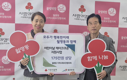 ±º»ê½Ã ¿ù¸íµ¿Áö¿ª»çȸº¸ÀåÇùÀÇü(°ø°øÀ§¿øÀå »ó±ÍÁ¤, ¹Î°£À§¿øÀå ÀÓ±¤ºó)´Â 29ÀÏ ¾î¸°À̳¯À» ¸Â¾Æ °ü³» Àú¼Òµæ °¡Á¤ 35°¡±¸¿¡ 5¸¸¿ø »ó´çÀÇ ÄÉÀÌÅ© ÄíÆùÀ» Àü´ÞÇß´Ù.